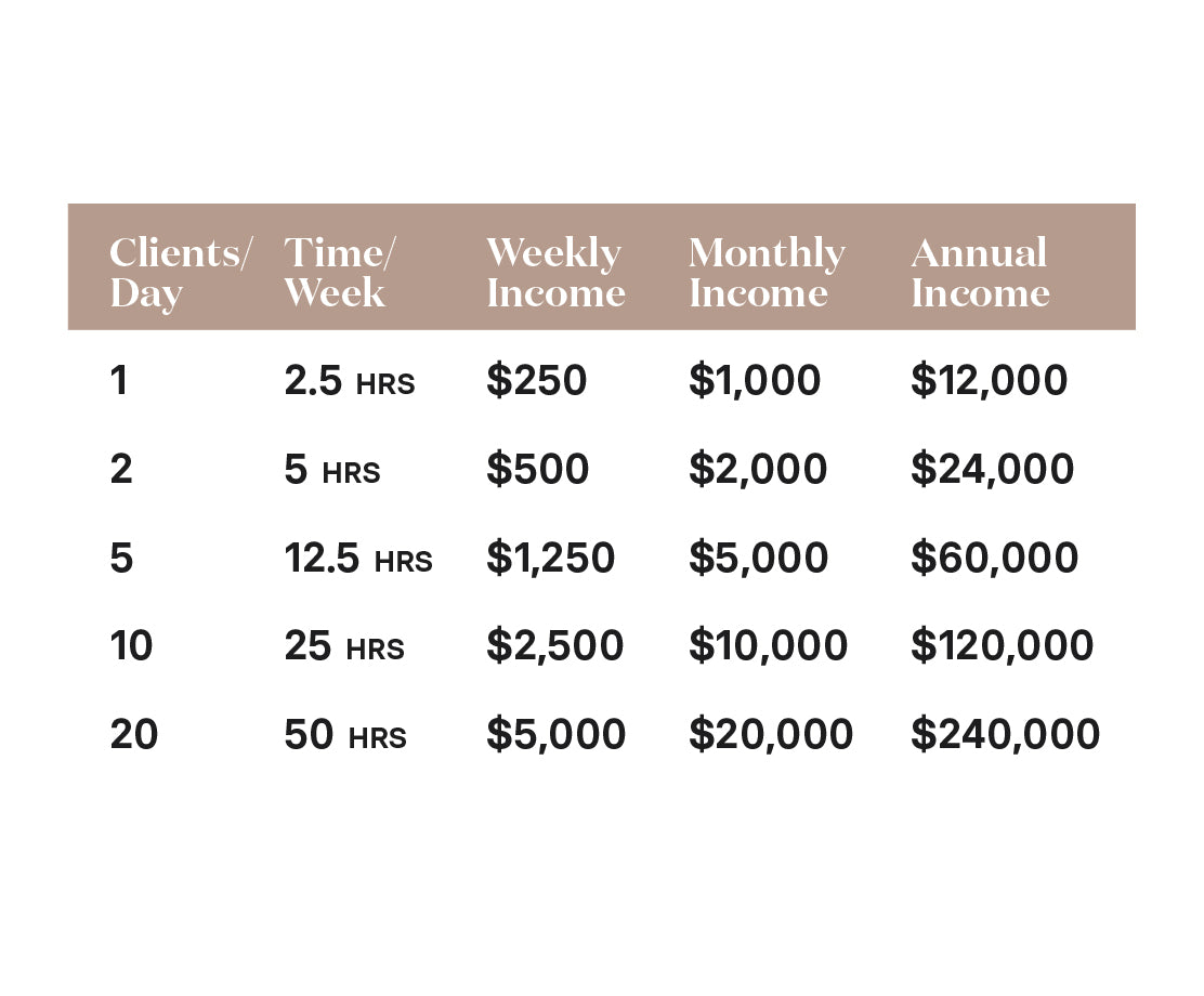 If each of your clients got a tan + a lotion = $50/client of take home income.